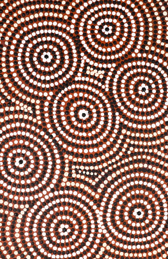 Cynthia has painted her Mother’s country Lirrwarti near Pippar, where Ningie Nanala, a renowned Balgo artist, spent her young years.