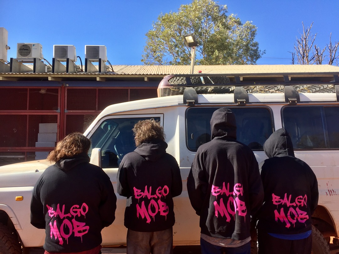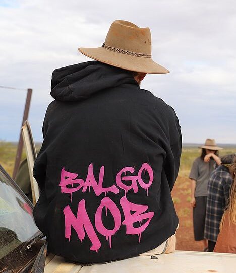 Balgo Mob hoodies from AS Colour! Featuring the famous pink Balgo troopy with the Tanami Track sign on the front, with ‘Balgo Mob’ on the back.